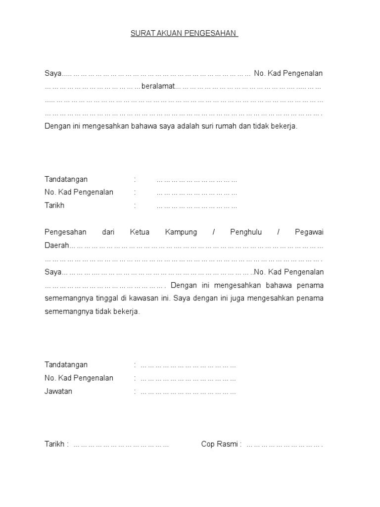 18 jalan 6a 1 bandar contoh surat akuan sumpah bujang jawi by posted on february 15 2020. Ney khas tuk ibunye sorang suri rumah. Surat Pengesahan Tidak Bekerja Suri Rumah Pdf For more information and source see on this link.