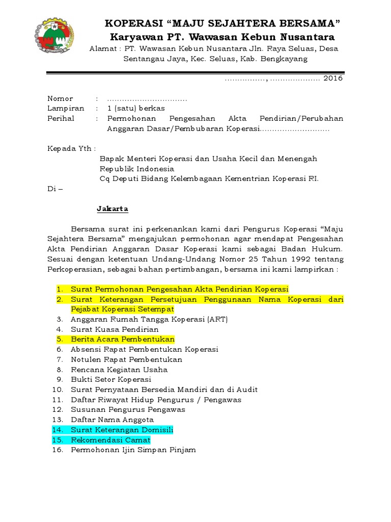 Surat permohonan menjadi anggota koperasi. Salah satu kegunaan surat keterangan kerja adalah. Surat Permohonan Menjadi Anggota. Alasan saya mengundurkan diri dari koperasi yaitu dikarenakan saya akan pindah domisili ke Kalimantan. Menjadi Anggota Koperasi Pegawai RI Departemen Agama Kantor Kabupaten Tangerang Dengan membayar Simpanan Pokok sebesar Rp 50000- satu kali saja waktu daftar Dan Simpanan Wajib sebesar Rp 35000 setiap bulan. Fotocopy nomor rekening Non Gaji.